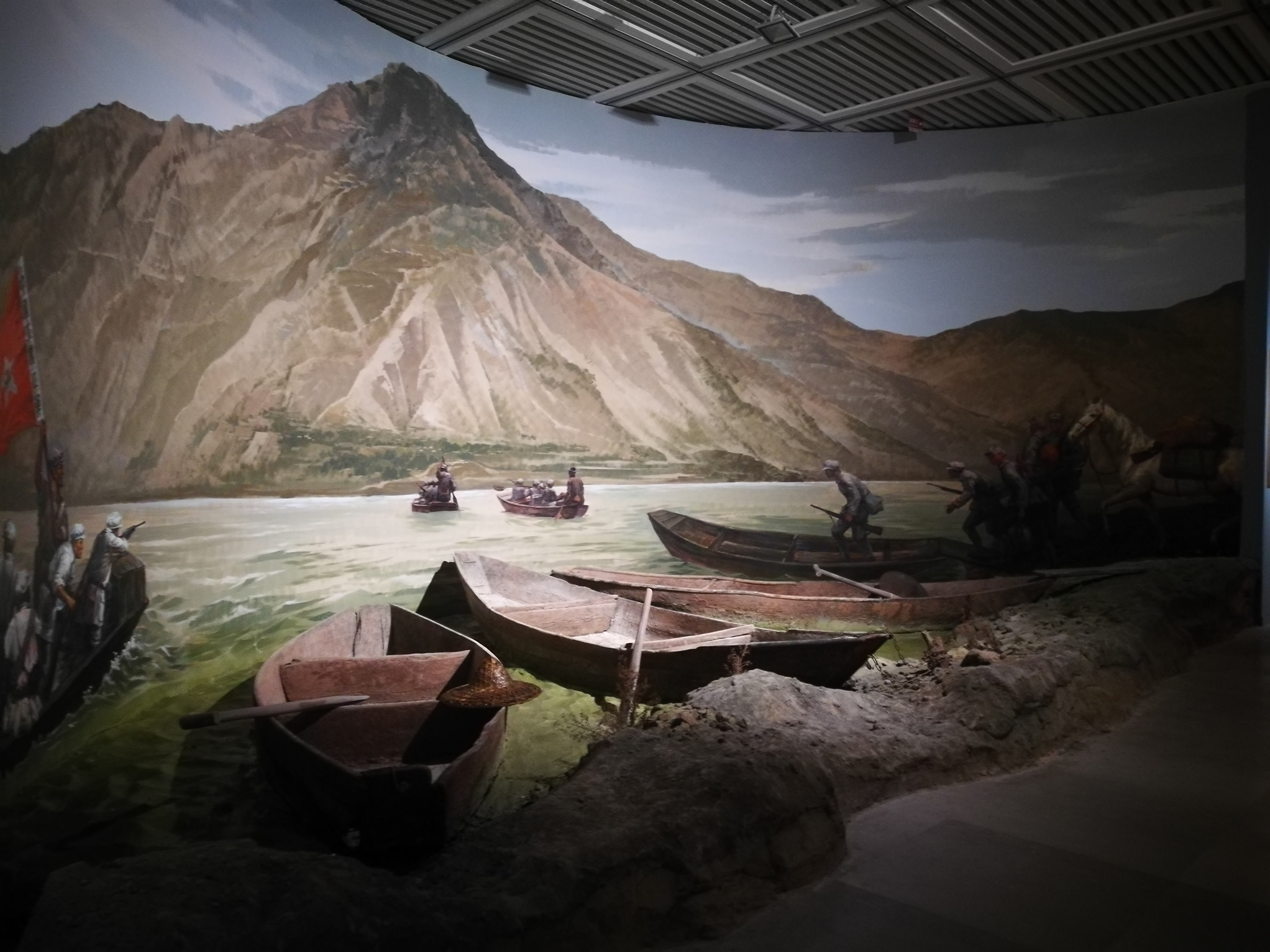 搶渡金沙江——紅軍在準(zhǔn)備渡江之際,蔣介石令龍云將各渡口的渡船、木板等渡江器具材料悉數(shù)鑿沉燒毀……后來,在皎平渡37名船工的幫助下,紅軍主力軍渡過了金沙江。