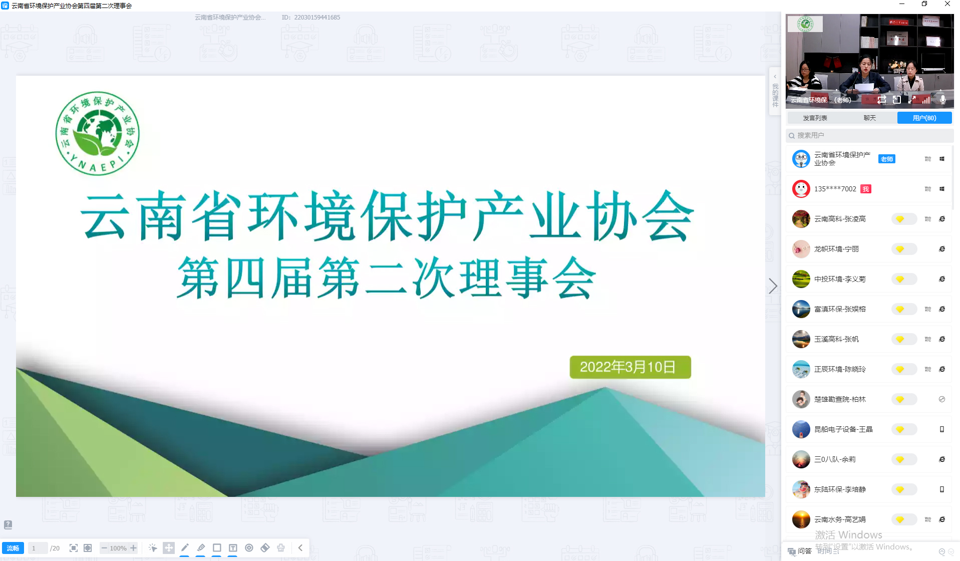 3月10日上午9:30,云南省環(huán)境保護(hù)產(chǎn)業(yè)協(xié)會(huì)第四屆第二次理事會(huì)以線上會(huì)議的形式召開(kāi),會(huì)議由第四屆理事會(huì)會(huì)長(zhǎng)張齊主持,第四屆理事會(huì)理事及監(jiān)事共計(jì)80余人參加了本次會(huì)議。