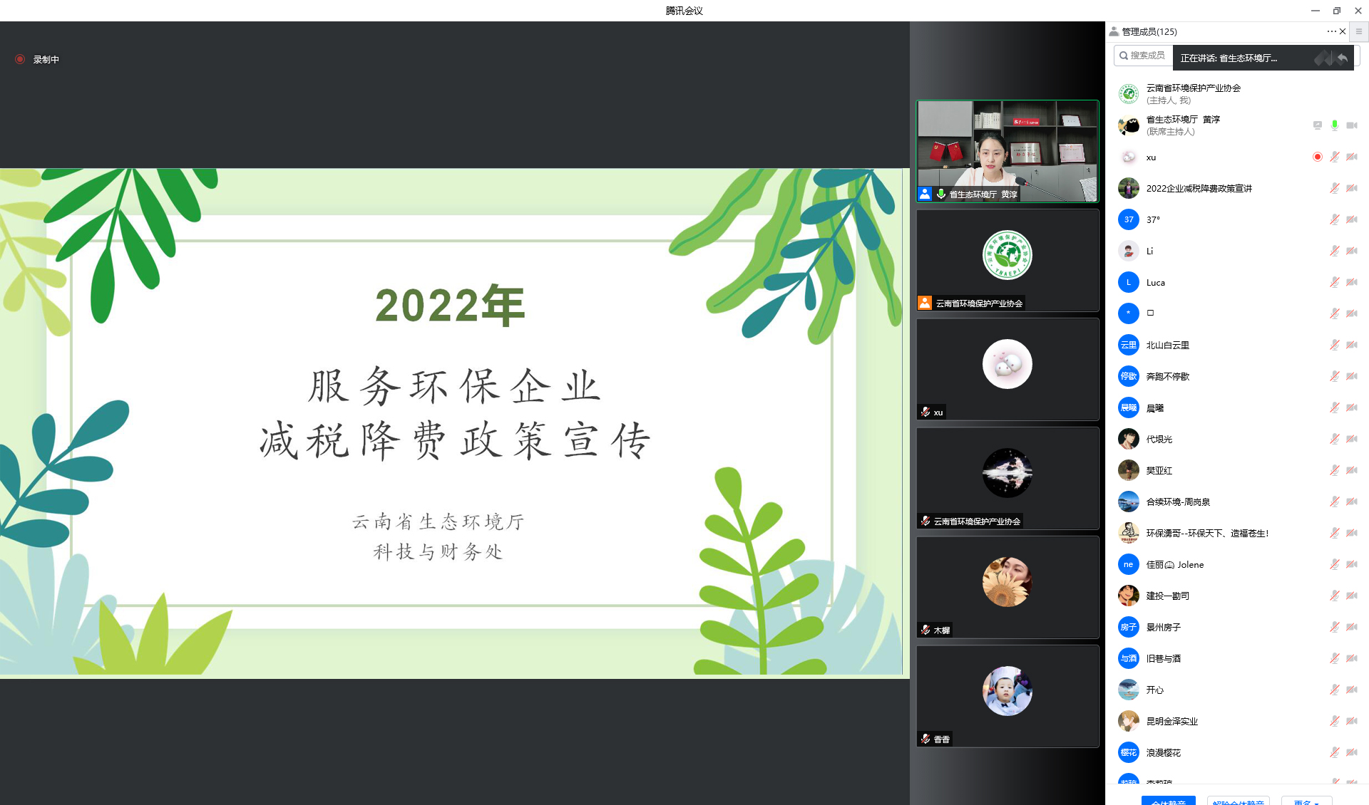 為深入貫徹黨中央國務院穩(wěn)住宏觀經濟大盤的系列部署,積極助力企業(yè)紓困,服務環(huán)保企業(yè),云南省生態(tài)環(huán)境廳聯(lián)合云南省環(huán)境保護產業(yè)協(xié)會于2022年6月10日上午開展了面向全省環(huán)保企業(yè)的減稅降費政策宣講活動,云南省生態(tài)環(huán)境廳科技與財務處一級主任科員黃淳介紹了2022年新出臺的國家及云南省的相關減稅降費政策。