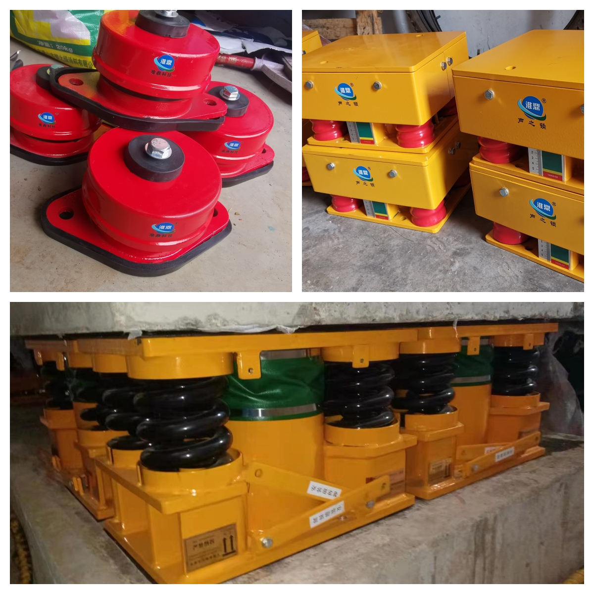 隔振器:頻率低于 6Hz的低頻靜音減振器。可選大撓度(不低于 50mm)低頻彈簧減振器配合天然膠墊安裝或者加裝空氣彈簧減振器。因是改造項目,彈簧減振器高度過大,不適合安裝,所以設(shè)計安裝超低頻靜音系列的空氣彈簧減振器、橡膠減震器、部分鋼彈簧減震器等其他減振產(chǎn)品配合使用。隔振降噪原理:空氣是振動和噪音的不良導(dǎo)體,用隔振手段把設(shè)備與樓板隔離開,由剛性連接轉(zhuǎn)換成軟性連接,中斷振動傳播途徑。 設(shè)計隔振效率:90%。 隔振效果:安裝后整個隔振體系的自振頻率達到 3Hz以下,低頻振動及因低頻振動產(chǎn)生的噪音基本消除。
